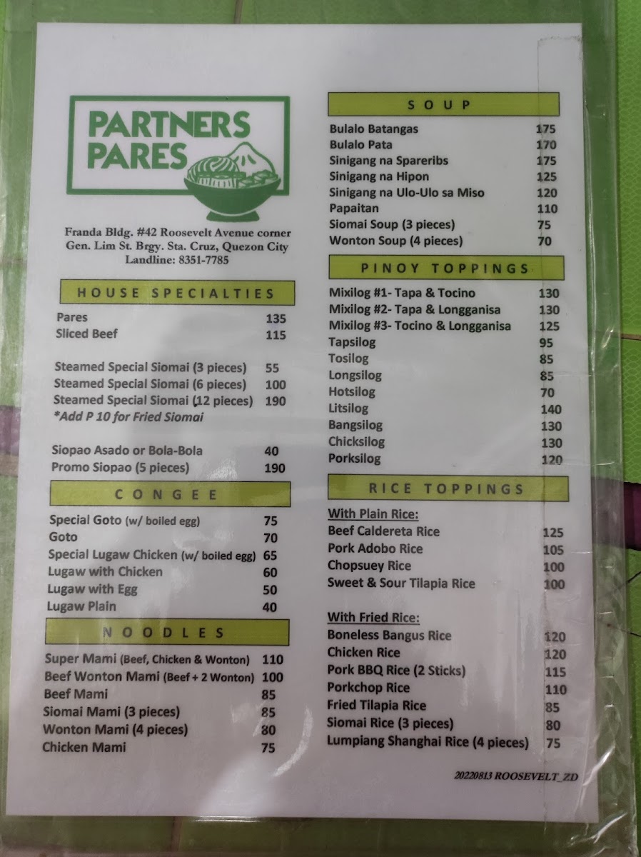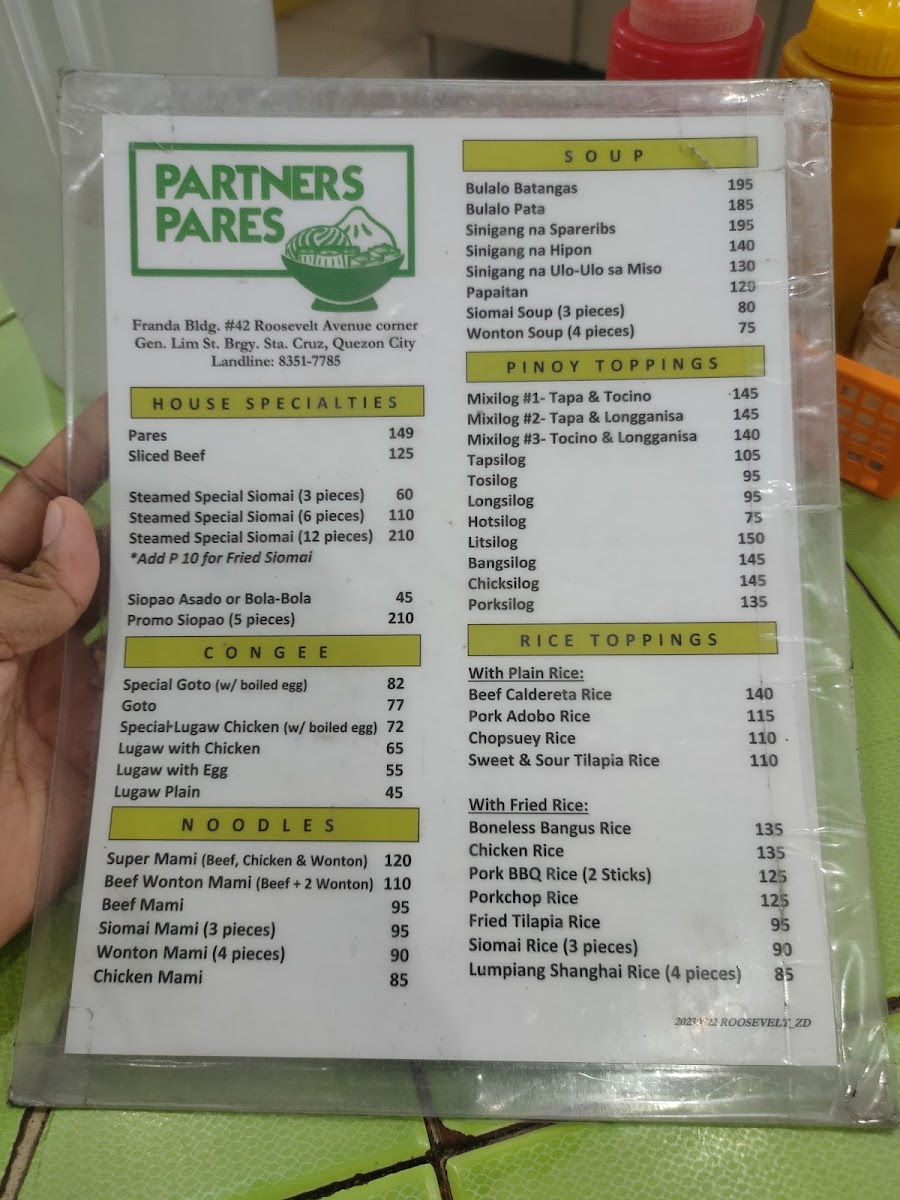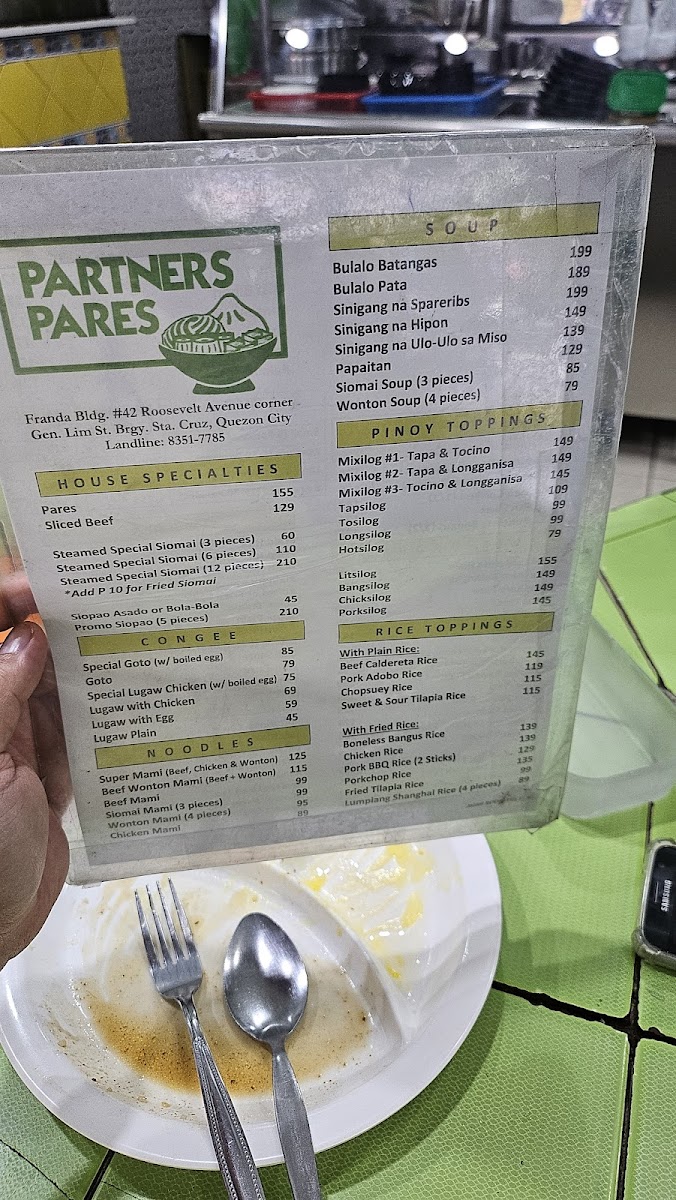 Original Partners Pares & Mami House in Sta. Cruz, Quezon City is a beloved fast food spot specializing in hearty Filipino comfort food. Their flagship dish, pares, features tender beef slow-cooked to savory perfection, earning praise for quality and generous portions. Another highlight is their Super Mami—a comforting egg noodle soup topped with sliced beef, chicken fillet, and wontons, delivering rich, warm flavors. The Miki Bihon Bihon stir-fried noodles, mixing light and dark soy sauce with meat slices and vegetables, is a fulfilling choice for noodle lovers. Customers appreciate the cozy, homey atmosphere paired with attentive health protocols, including touchless sanitizers and well-ventilated seating. While some mention minor service quirks, the affordability and flavorful dishes make it a go-to for late-night cravings or quick indulgence. Overall, Original Partners Pares & Mami House offers authentic, satisfying Filipino fast food that feels like a warm, comforting meal anytime.